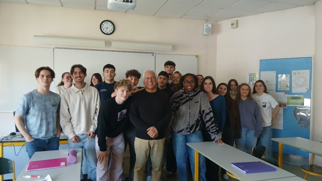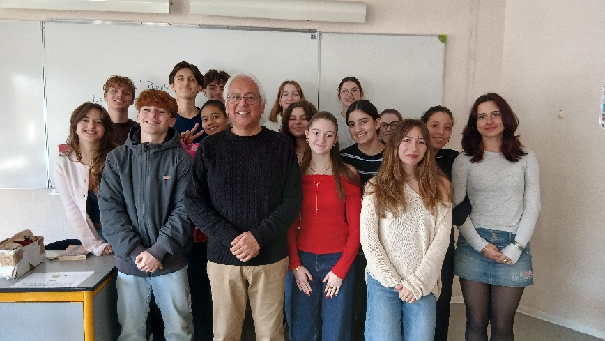 Le jeudi 18 décembre, les deux groupes de Terminales spécialité AMC du lycée ont eu la chance de rencontrer et d’échanger avec l’écrivain et réalisateur Amérindien ou “Native American” comme ils sont désignés aux Etats-Unis, Aaron Carr, notamment auteur du livre “Eye Killers” sorti en 1995 et du documentaire “Kinaaldá : un rite de passage Navajo”, co-réalisé avec sa mère, Lena Carr.
