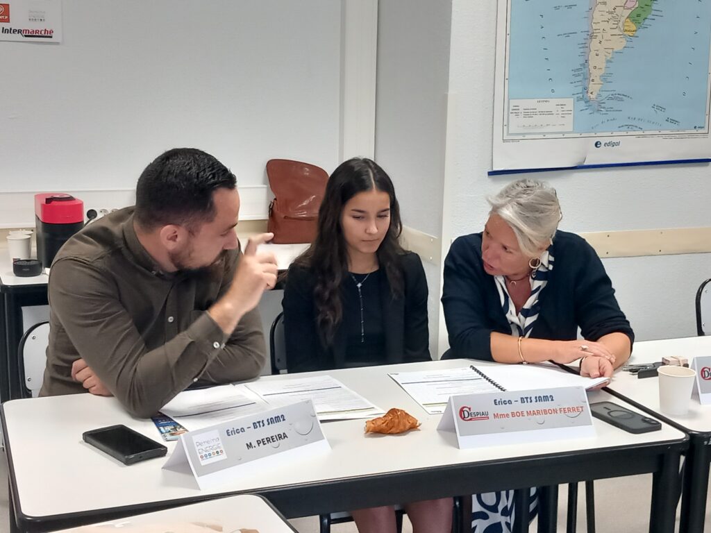 Erica entourée de M. Pereira et Mme Boé Maribon Ferret (BTS SAM)Julien entouré de Mme Lamon, Mme Poublan et Myriam Dhailly (BTS SP3S)Lucas entouré de M. Garbaye et Mme Gouwy (BTS MCO)Clara entourée de M. Jeamoura, M. Ballester et M. Petrau (BTS MCO)