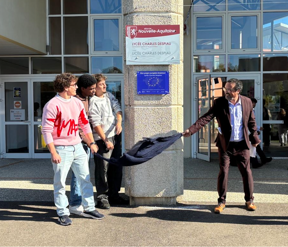 La semaine s’est conclue vendredi par l’inauguration d’une plaque par Monsieur Laborde, Proviseur, et Enzo, Matthys et Mathew les trois étudiants, soulignant l’engagement du Lycée Charles Despiau en faveur de l’Europe.