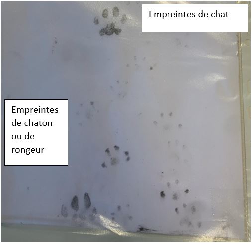 « Nous avons installé un tunnel à hérisson afin de collecter des empreintes de différents animaux présents dans l’enceinte du lycée. Nous avons pu observer des empreintes de chats sans aucun doute et d’autres empreintes qui pourraient correspondre à des rongeurs. Nous n’avons malheureusement pas pu relever de traces de hérissons. »